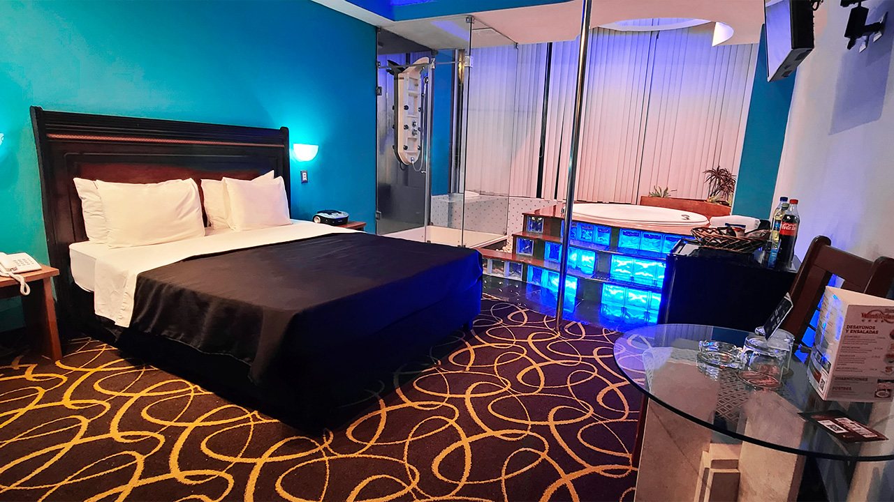 Detalles: Cama Queen confort 100%, Pole dance, Jacuzzi, Aire acondicionado, Baño agua fría – caliente, Frigobar (con cargo extra).