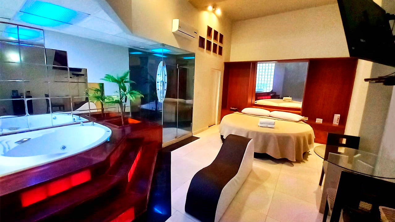 Detalles: Cama redonda, Jacuzzi con hidromasaje, Sillón Tántrico, Pole dance, Frigobar (con cargo extra).